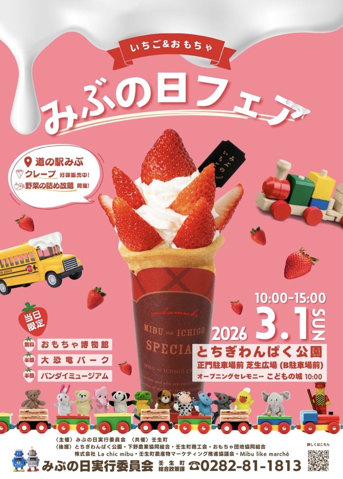 当日はおもちゃ博物館が無料、バンダイミュージアムや大恐竜パークも半額になる特別な一日です。広い公園で思いっきり遊んだあとの「甘いもの補給」に、ぜひ当店のブース(テントエリアNo.23)へお立ち寄りください!
