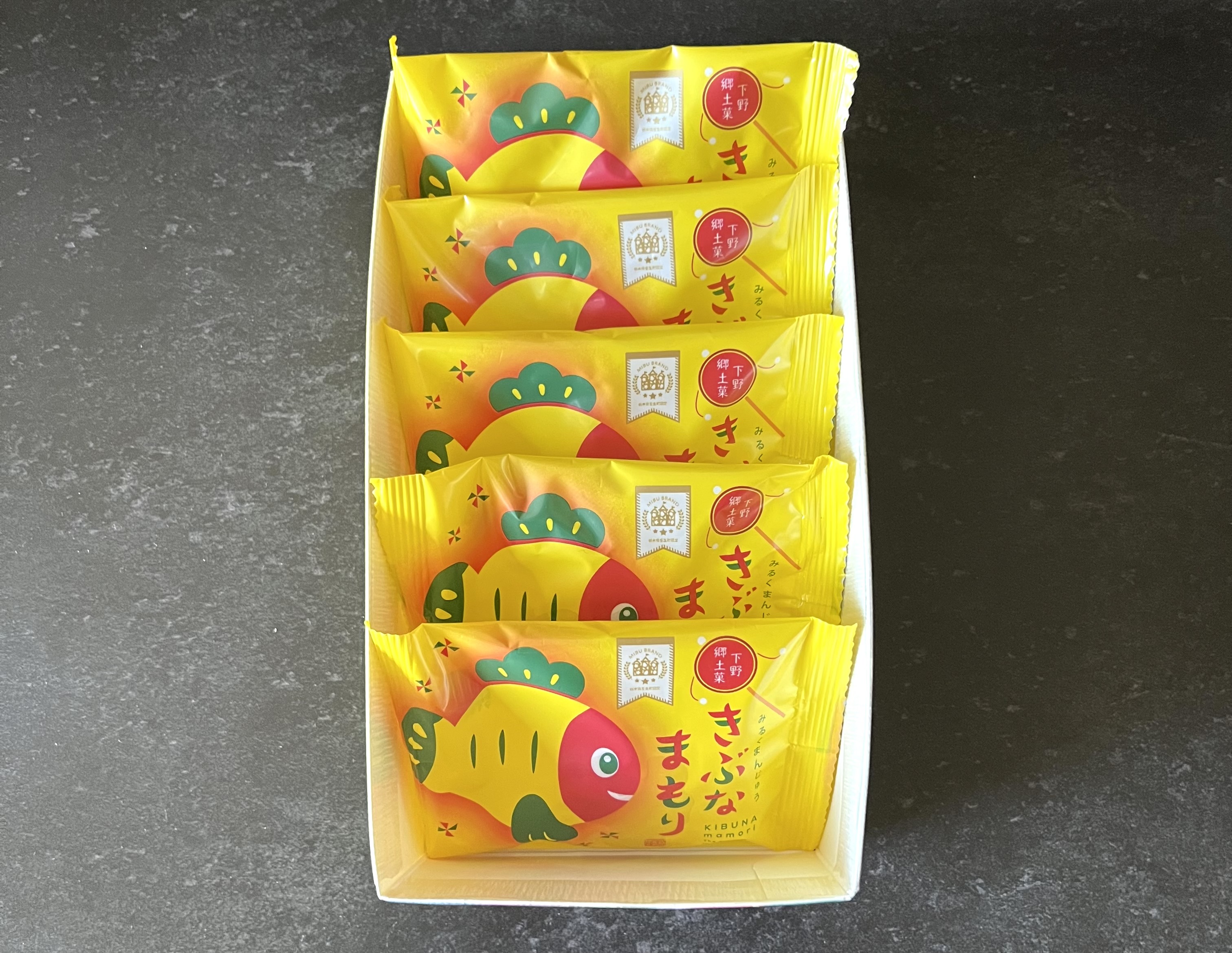 | 商品説明 | 昔、流行病の病人が田川で釣れた黄色いフナを食べたところ、たちまち元気になったという伝説から、以降その黄色いフナを模した張子を軒下に吊るし無病息災を祈ることが習慣になったと言われております。 練乳とバターをたっぷり使ったみるく餡を、ソフトな生地で包んだみるくまんじゅうは、そんな「きぶな」のように、やさしい味わいに笑顔こぼれる美味しさです。 |
