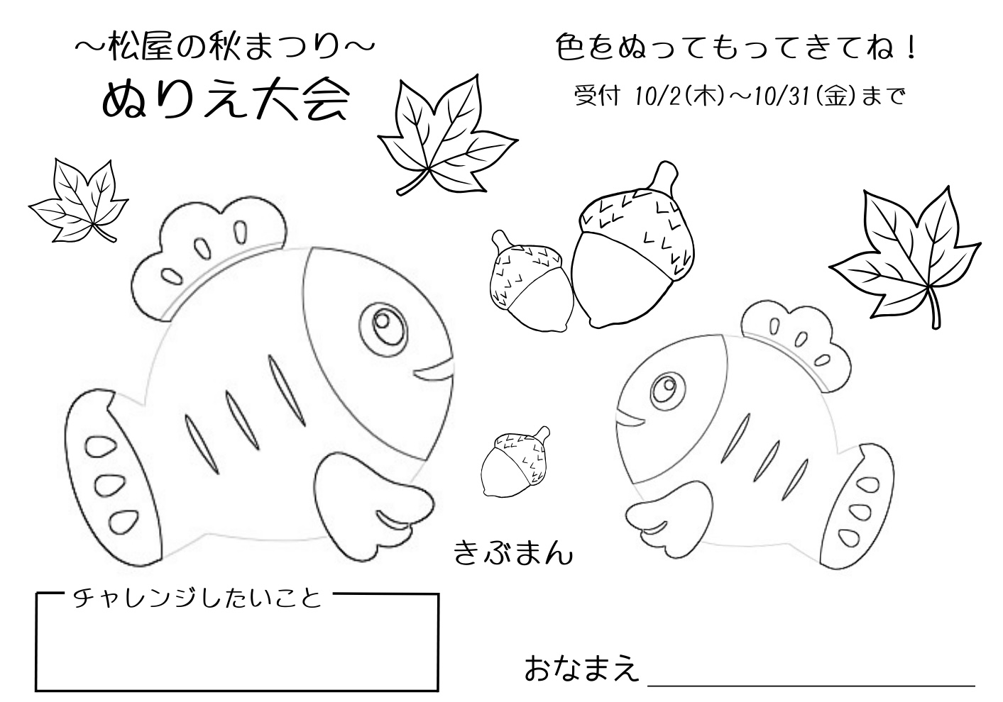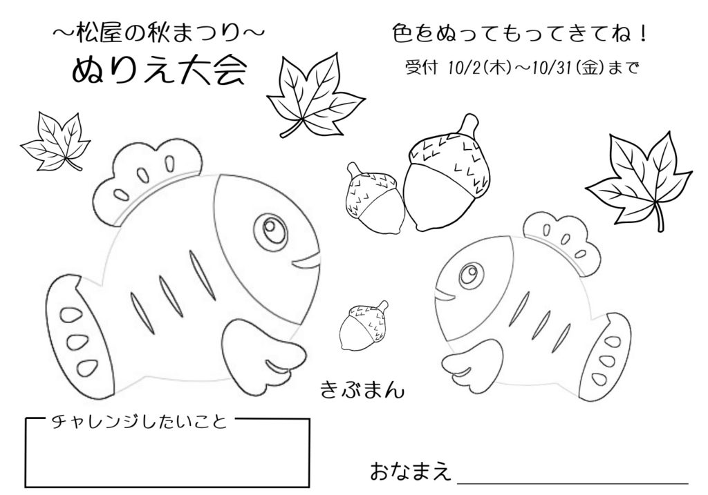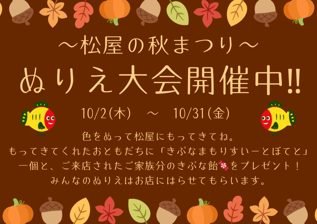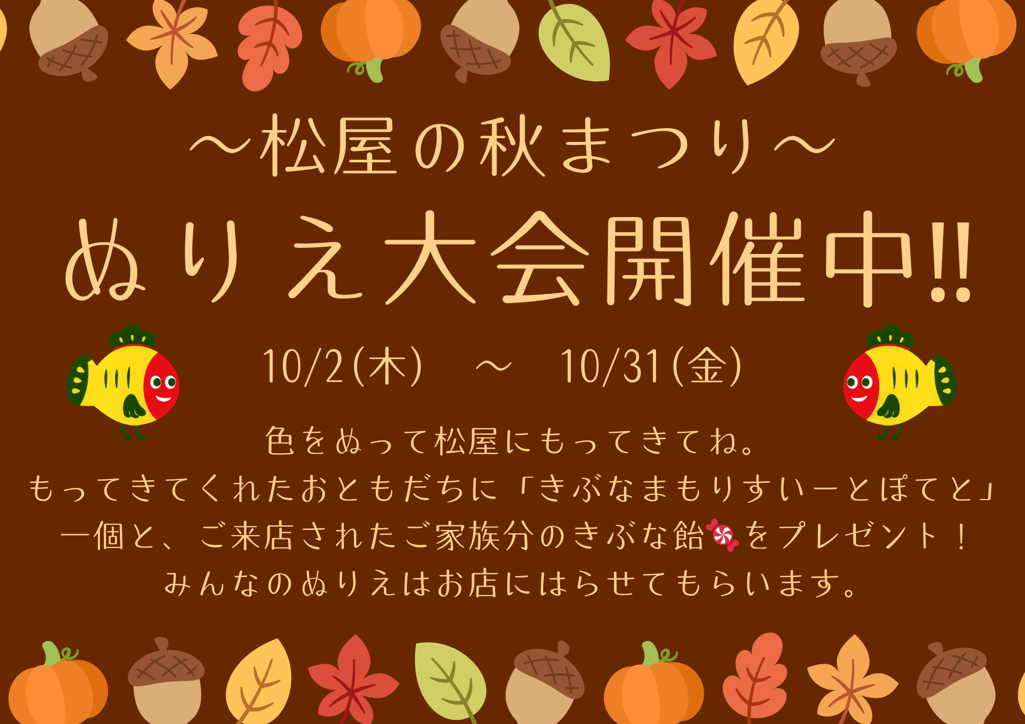 【お知らせ】 「松屋の秋まつり ぬりえ大会」 期間:10月2日(木)〜10月31日(金)