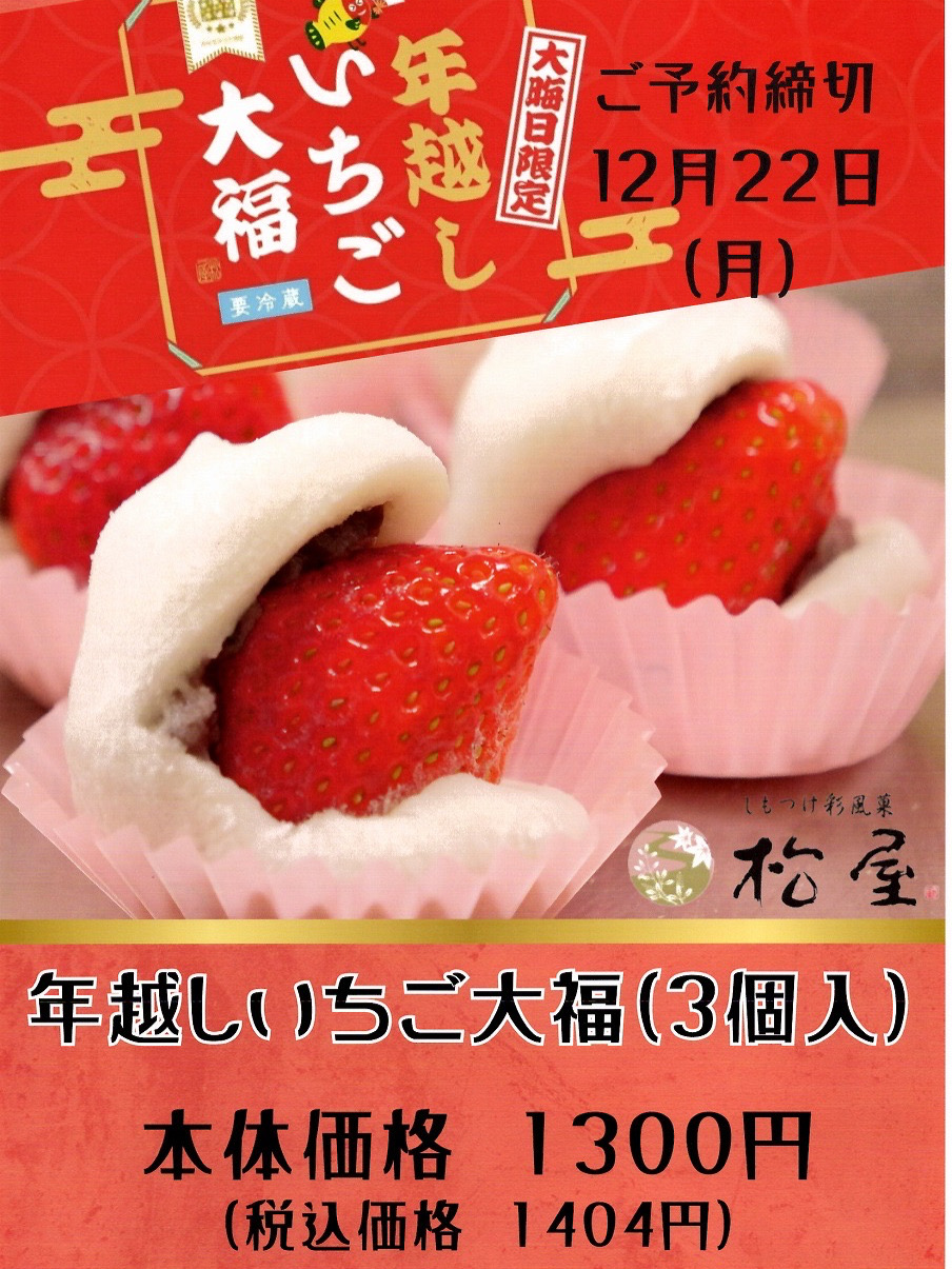 【商品情報】 限定300パック!年越しいちご大福予約受付中