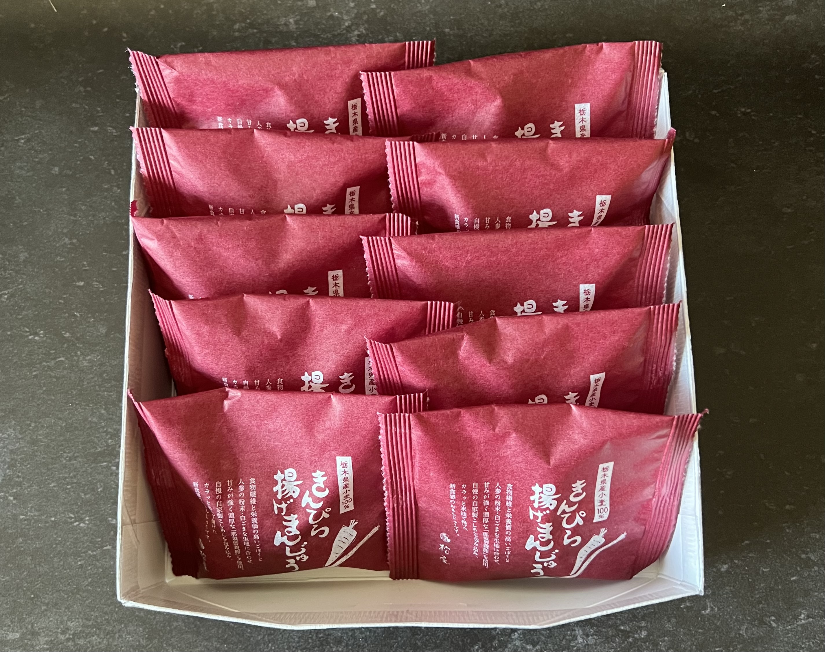 砂糖(国内製造)、小豆、黒糖、小麦粉、卵、ごぼうパウダー、醤油、みりん、蜂蜜、人参パウダー、米油、白ごま、寒天/トレハロース、膨張剤